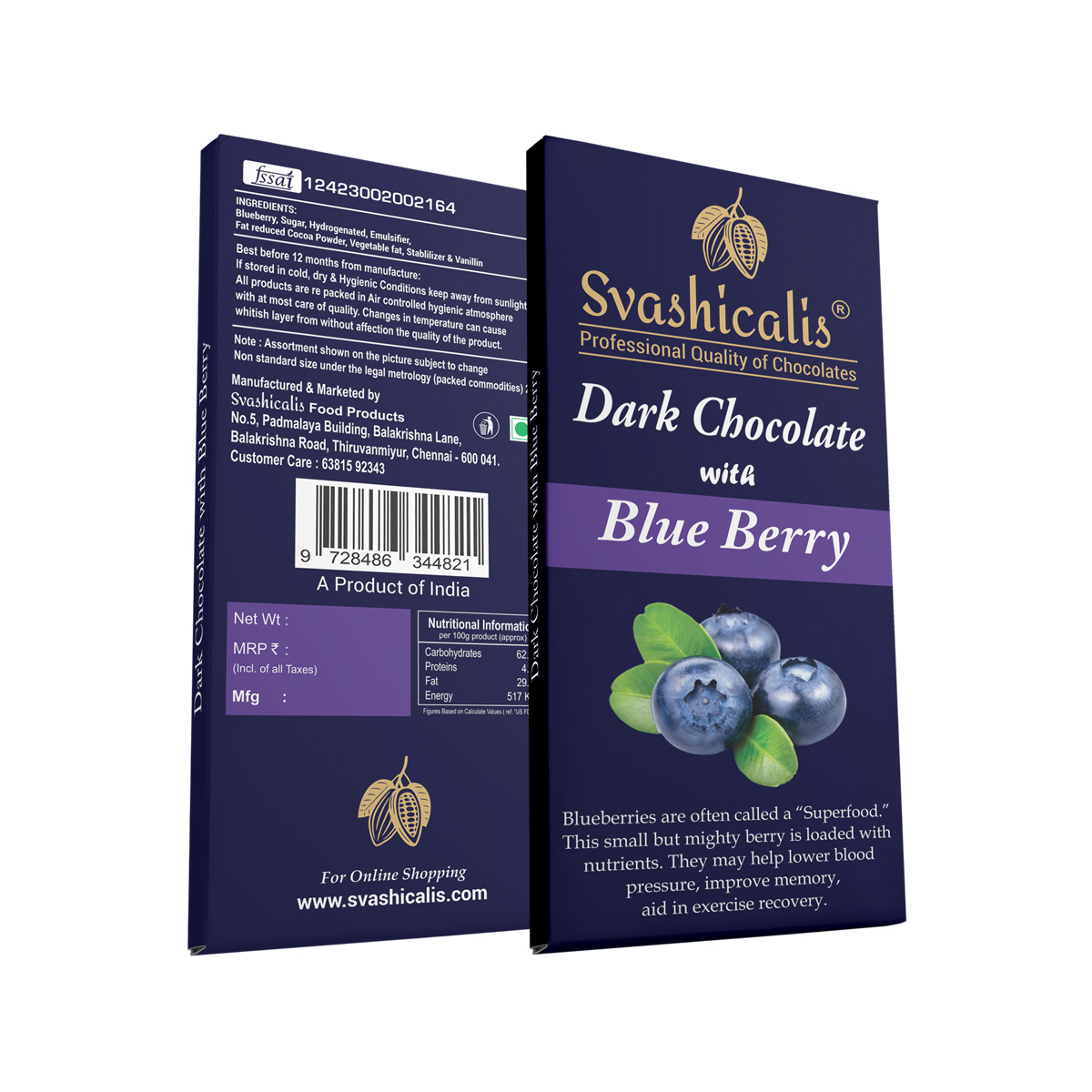 Indulge in the rich, smooth taste of our Dark Chocolate with Blueberry, crafted for true chocolate lovers. Each bite blends the bold intensity of dark chocolate with the sweet-tart burst of real blueberries – creating a perfect balance of flavor and texture. A delightful treat for snacking, gifting, or satisfying your chocolate cravings.